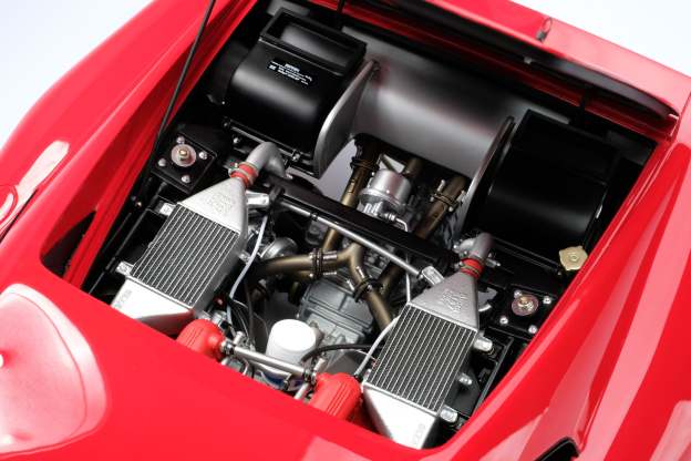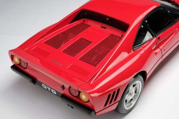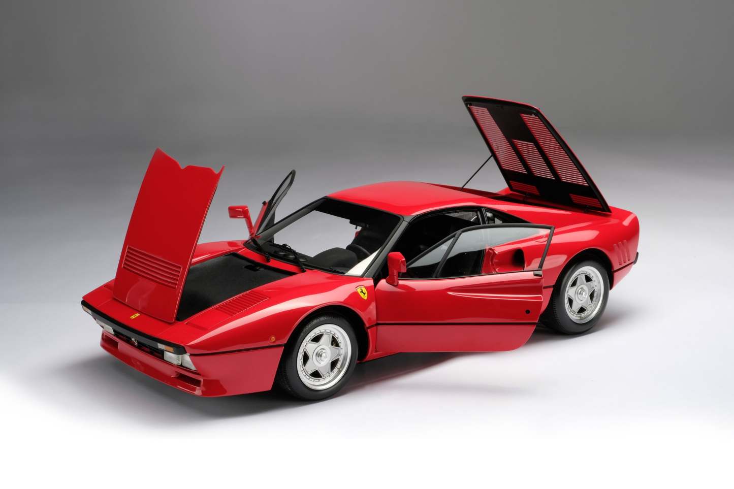 The Ferrari 288 GTO is limited to just 199 pieces and features opening doors and engine cover, displaying the intricate detailing of its interior and beautiful V8 engine.